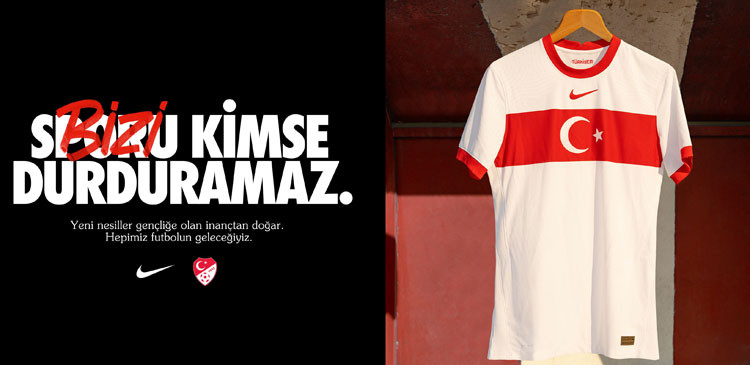 Geleneksel renkler ve sembollerden ilham alınarak tasarlanan formalarda bayrak ve bant tasarımın merkezini oluşturuyor. Büyütülmüş ay-yıldız, kırmızı bantın ortasında yer alıyor.