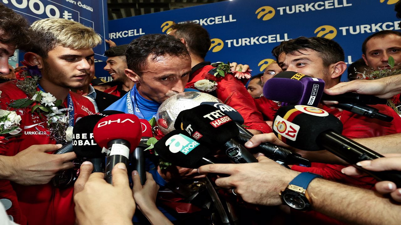 Marş, slogan ve bayraklarla sevgi gösterileri yapılan futbolcular, daha sonra kendileri için hazır bekleyen otobüsle havalimanından ayrıldı.