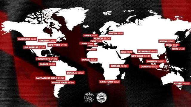 Şampiyonlar Ligi finalinde Fransız ekibi Paris Saint Germain ile karşılaşan Alman kulübü Bayern Münih, maç başlamadan 4 saat önce Twitter hesabından bir harita paylaştı. Dünyadaki önemli başkentlerde ve ülkelerde yerel saatler ile maçların kaçta başlayacağını gösteren haritadaki skandal Türkiye hatası ise tepki çekti.