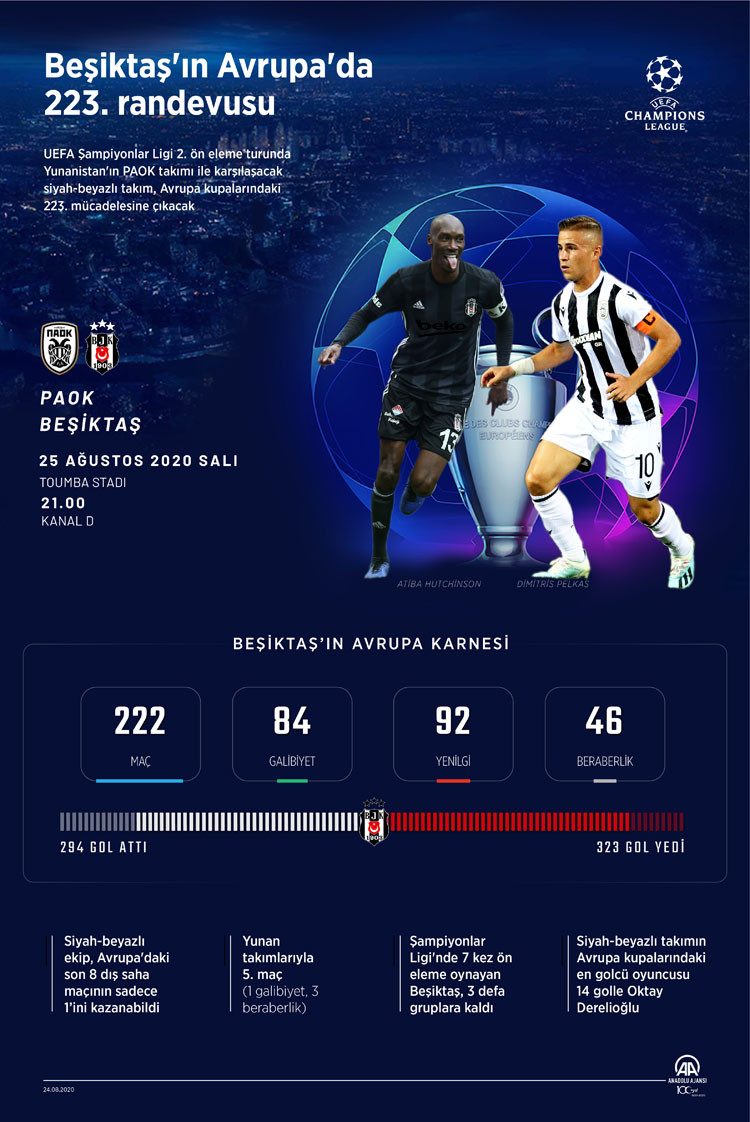 UEFA Şampiyonlar Ligi 2. ön eleme turunda yarın Yunanistan'ın PAOK takımı ile karşılaşacak siyah-beyazlı takım, Avrupa kupalarındaki 223. mücadelesine çıkacak.