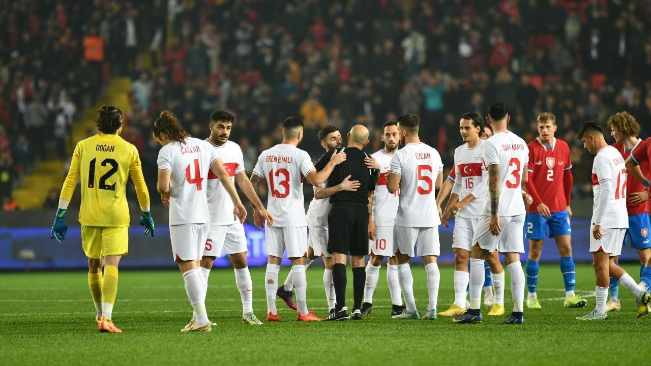 Kalyon Stadı'nda Türkiye ile Çekya arasında oynanan hazırlık maçının ilk 5 dakikasını yöneten Çakır'ı, sahada bulunan A Milli Takım ve Çek futbolcular sarılarak tebrik etti.