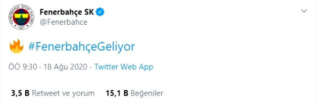 Resmi açıklamadan önce heyecanlandıran bir paylaşım da yapan Fenerbahçe, Twitter hesabından alev emojisiyle birlikte "Fenerbahçe geliyor" ifadelerine yer verdi. Sezonun 6. transferini bitiren sarı lacivertliler daha önce Mert Hakan Yandaş, Caner Erkin, Gökhan Gönül, Filip Novak ve Barış Sungur transferlerini açıklamıştı.