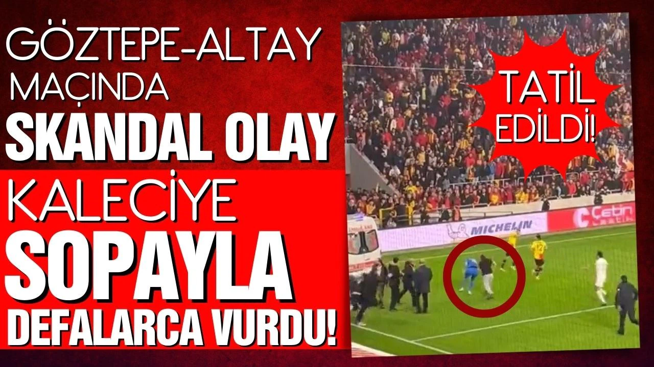 🔹İzmir derbisinde sahaya giren bir taraftar, elindeki sopayla Altay kalecisi Ozan Evrim Özenç'e vurdu.