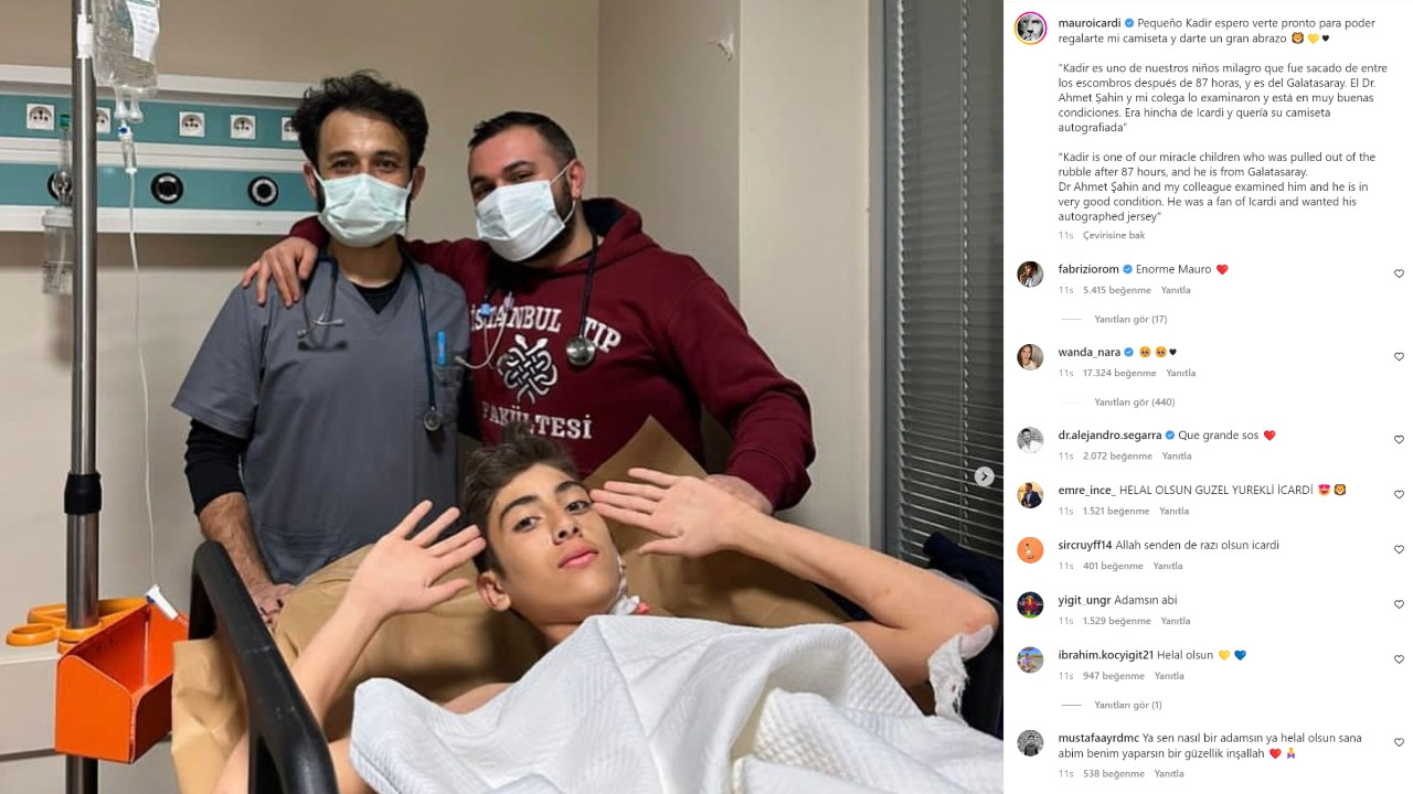 Deprem bölgesinde 87 saat enkaz altında kalan ve sağ olarak çıkan Kadir'e hastanede yatarken, Mauro Icardi'den mesaj geldi. Sarı-kırmızılı kulübün yöneticileriyle konu hakkında görüşen Icardi, Kadir ile kısa bir süre sonra görüşmek istediğini bildirdi.