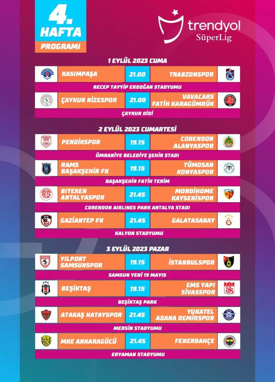 FF, Süper Lig'de 3 ve 4. hafta programını açıkladı.