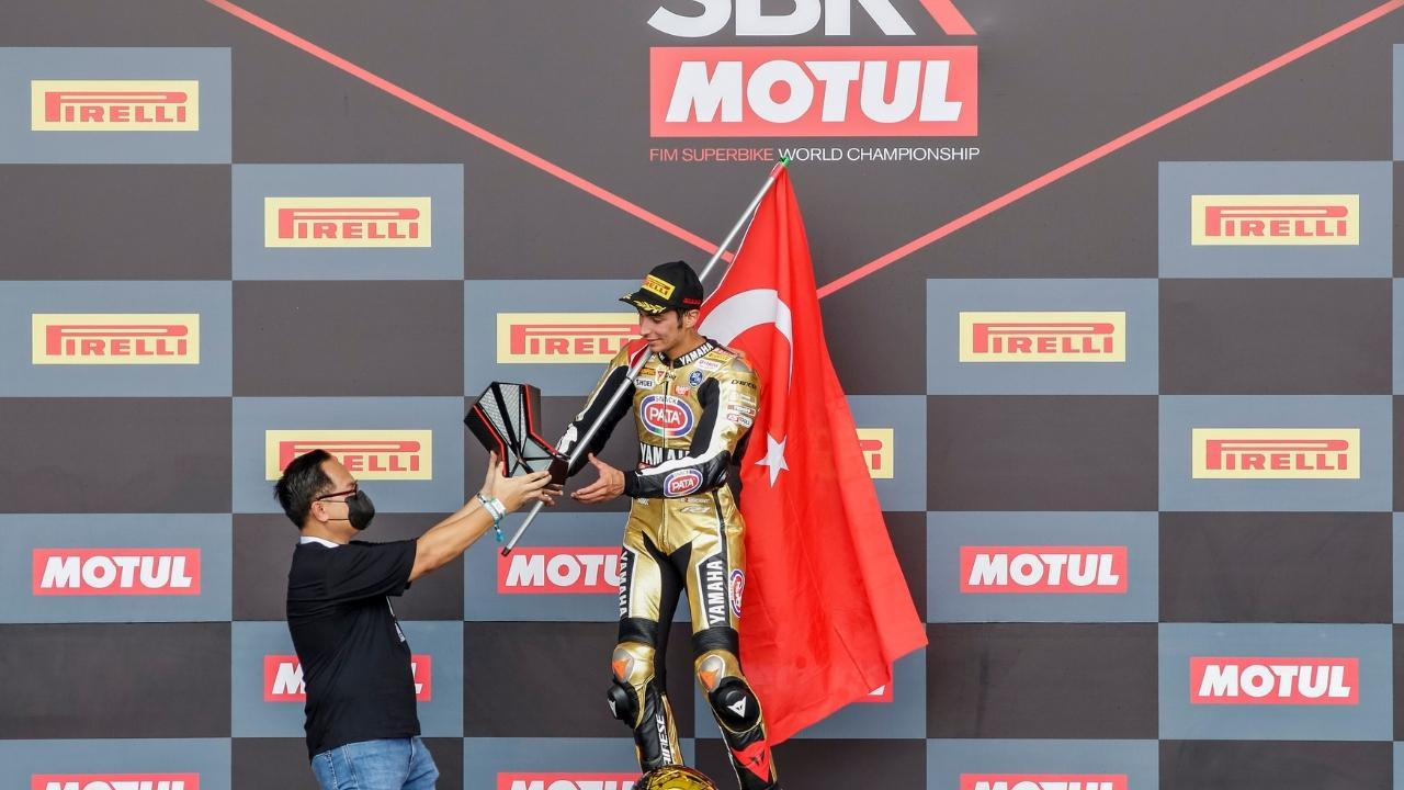 Milli motosikletçi Toprak Razgatlıoğlu ilk yarış sonrası şampiyonluğu garantiledikten sonra duygusal anlar yaşadı. Toprak Razgatlıoğlu'nu ilk tebrik edenler Türkiye Motosiklet Federasyonu Milli Takımlar Kaptanı Kenan Sofuoğlu, Milli motosikletçi Can Öncü oldu.