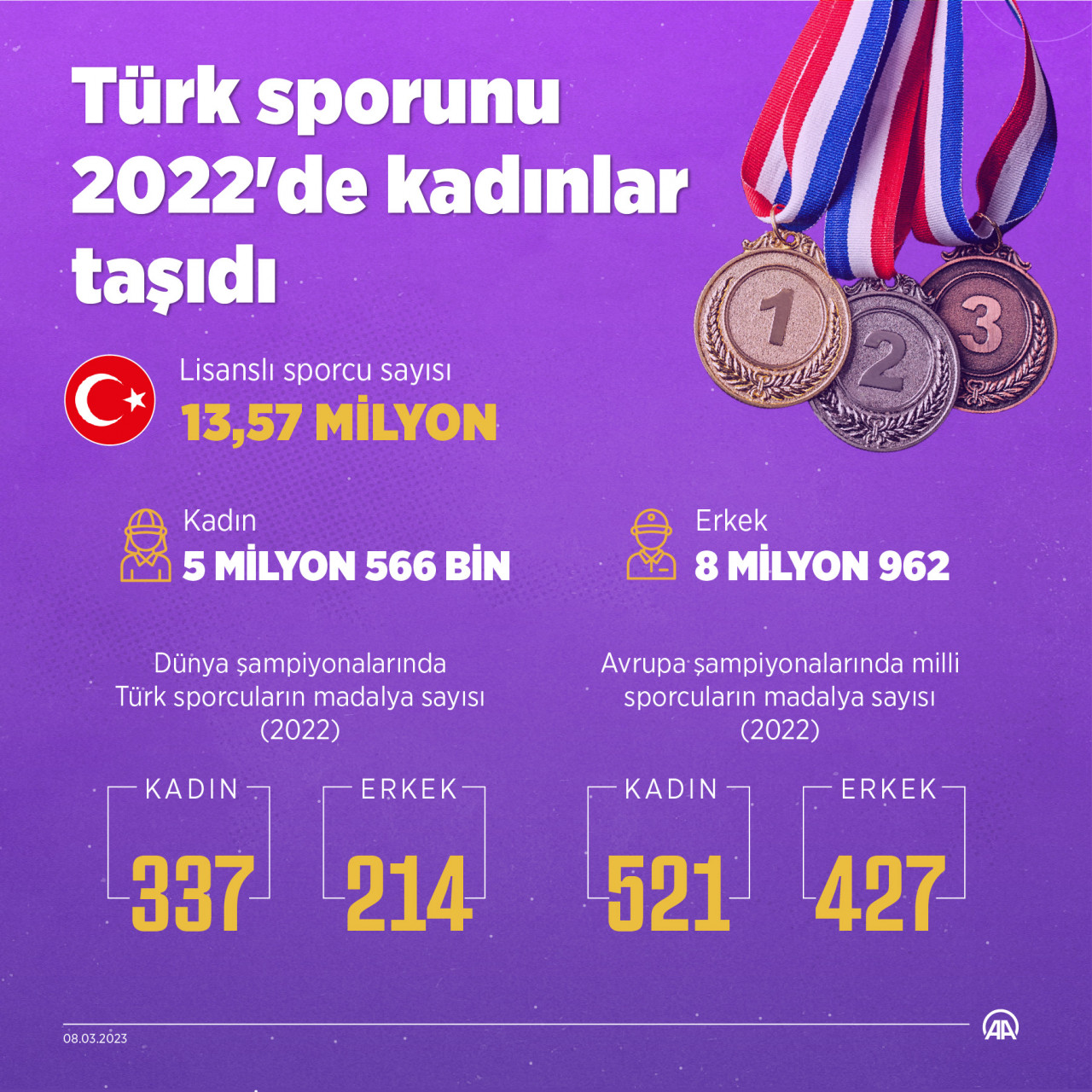Türk sporuna 2022 yılında kadınlar damga vurdu. Dünya şampiyonalarında kazanılan 551 madalyanın 337'sini kadınlar elde etti.