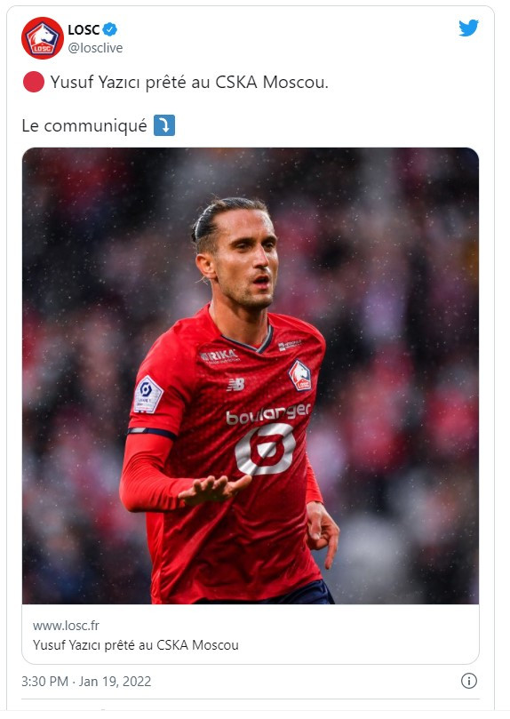 Lille Kulübü, sosyal medyadan yaptığı paylaşımla Yusuf Yazıcı'nın CSKA Moskovaya kiralandığını resmen duyurdu.