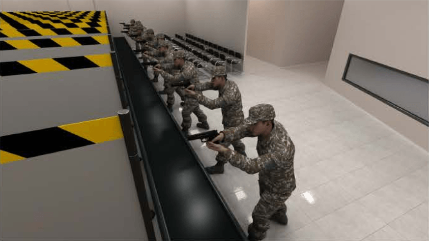 Atış eğitim simülatörü, farklı müşteri profilleri için 100'den fazla video ve 3 boyutlu sanal görüntü tabanlı senaryolar içeriyor.