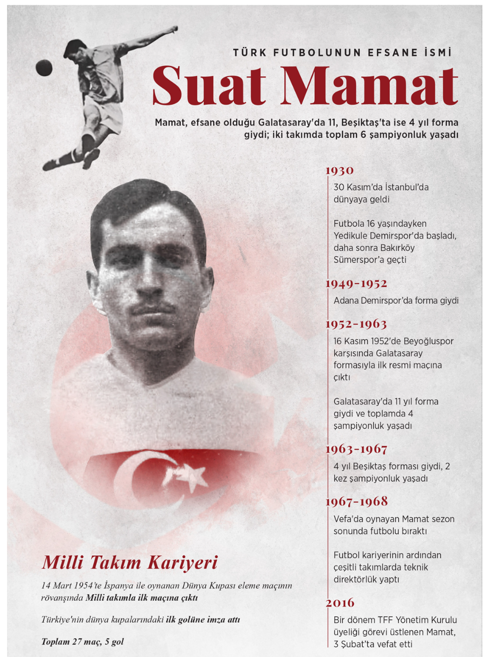 Türk futbolunun efsane isimlerinden Suat Mamat, vefatının 6. yıl dönümünde yarın anılacak.