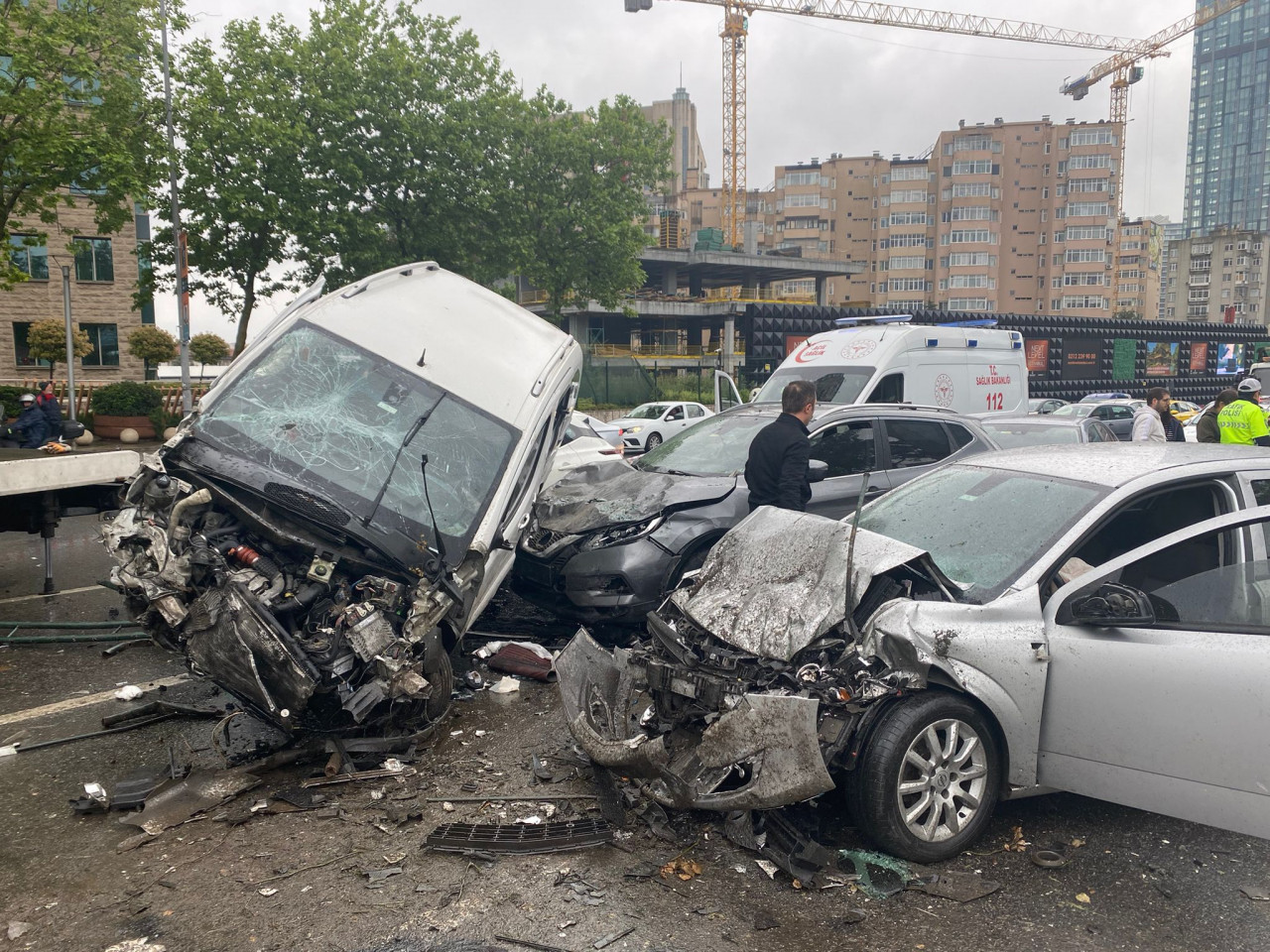 Beşiktaş Büyükdere Caddesi'nde 7 aracın karıştığı zincirleme kaza meydana geldi.