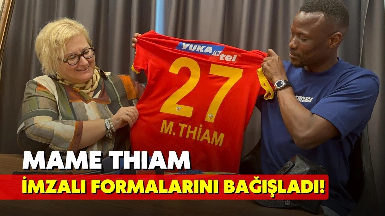Thiam, hem Kayserispor hem de eski kulübü Fenerbahçe'de giydiği 2 formayı imzalayarak Sağman'a teslim etti.