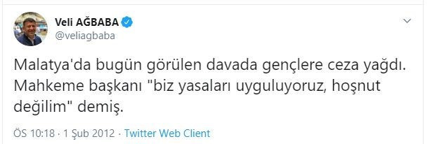 Alevi-Sunni çatışması için Malatya’da körüklenen olayın bir numaralı faili olan Uğur P.’nin CHP Genel Başkan Yardımcısı Veli Ağbaba ile bağlantısı olduğu ortaya çıktı. DHKP/C’li Uğur P. 2012 yılının şubat ayında mahkemenin karşısına çıktı. Mahkemede DHKP/C’li ismi savunmak için bulunan kişiler CHP Malatya Milletvekili Veli Ağbaba ile Tunceli Milletvekili Hüseyin Aygün’dü. Hatta DHKP/C’li Uğur P.’nin 7 yıl 6 ay hapis cezasına çarptırıldığı duruşmanın ardından Veli Ağbaba şu paylaşımı yaptı: “Malatya’da bugün görülen davada gençlere ceza yağdı”