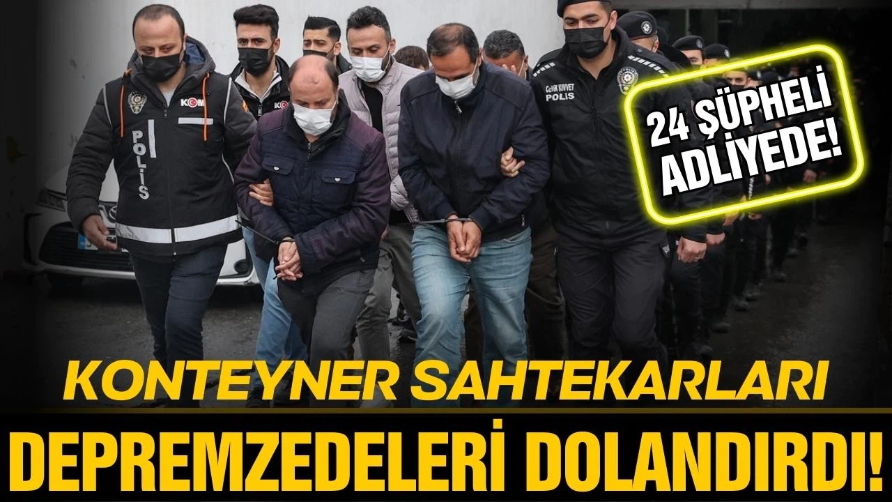 İl Emniyet Müdürlüğü ekiplerince, internet sitelerinde ucuz fiyata satılık konteyner ve karavan ilanı vererek 13'ü depremzede 21 kişiyi dolandırdıkları iddiasıyla dün Kocaeli, İstanbul ve Mardin'de düzenlenen eş zamanlı operasyonda gözaltına alınan 24 şüphelinin emniyetteki işlemleri tamamlandı.