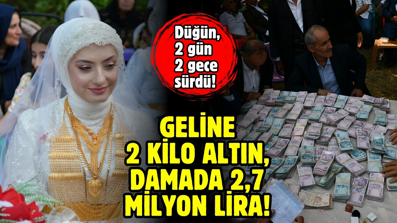 Düğünde geline 2 kilo altın, damada 2 milyon 750 bin lira takıldı.