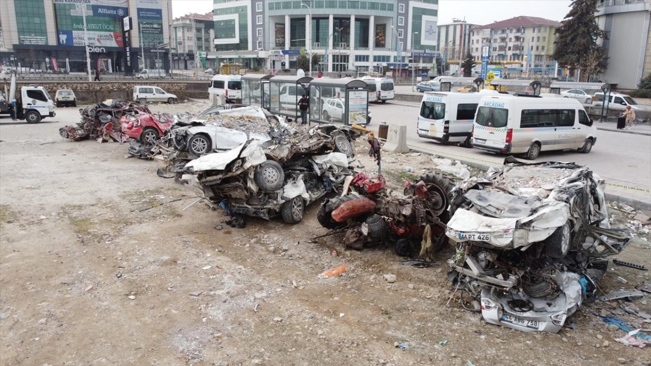 Kentin farklı noktalarından kaldırılan enkazların altından güçlükle çıkartılan, çoğu zaman 2-3 parçaya ayrılan otomobillerin bir çoğunun üstünde ise depremden arta kalan molozlar bulunuyor.
