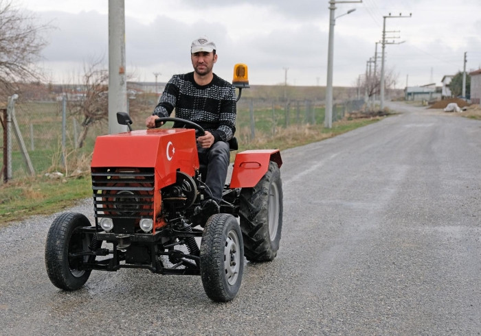 Konya'da yaşayan çiftçi Mustafa Zügül Karabaş (39), topladığı hurda malzemelerden evinin garajında mini traktör yaptı.