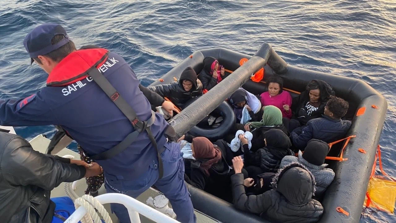 Karaburun ilçesi açıklarında, Yunanistan unsurlarınca Türk kara sularına itilen can salındaki 14 düzensiz göçmen de kurtarıldı.