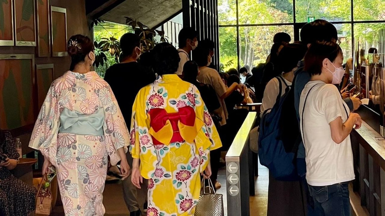 Geleneksel Japon mimarisiyle dizayn edilen Starbucks, görenleri büyülüyor.