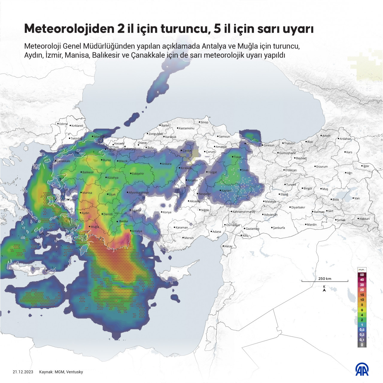 Meteoroloji Genel Müdürlüğünden yapılan açıklamaya göre, yarın saat 03.00'ten itibaren Ege Denizi kıyılarında etkili olacak sağanak ve yer yer gök gürültülü yağışların İzmir, Manisa, Aydın ve Muğla geneli, Çanakkale'nin güney kıyıları ve Edremit Körfezi'nde kuvvetli, Muğla'nın Bodrum, Datça, Marmaris, Ula, Köyceğiz, Ortaca ve Dalaman ilçelerinde çok kuvvetli olması bekleniyor.