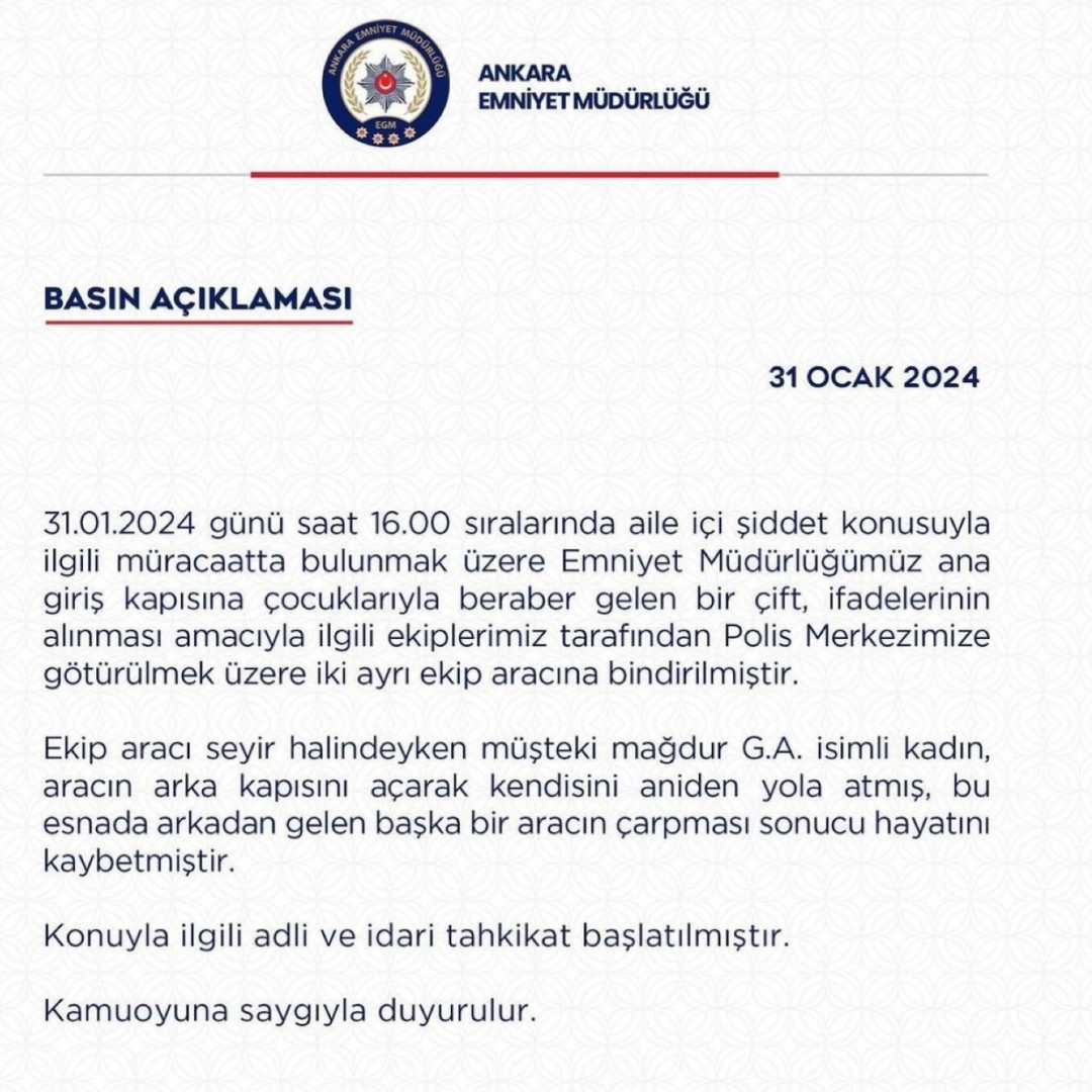 Ankara Emniyet Müdürlüğü, konuyla ilgili adli ve idari soruşturmanın başlatıldığını duyurdu.