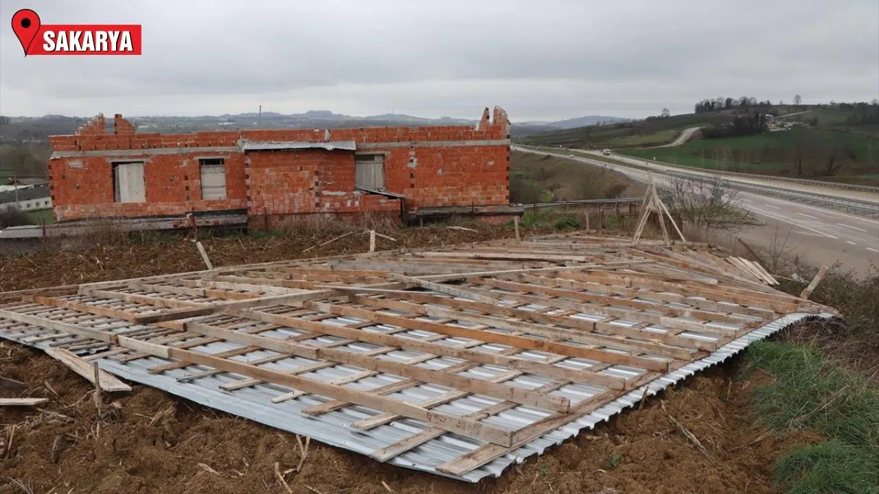 Kayacık Mahallesi'nde etkisini artıran rüzgar sebebiyle 2 katlı evin çatısı uçtu.