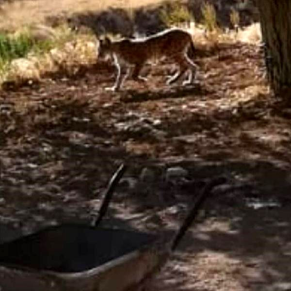Bahçede fotoğrafı çekilen vaşak, saniyeler içinde bölgeden hızlıca uzaklaştı.