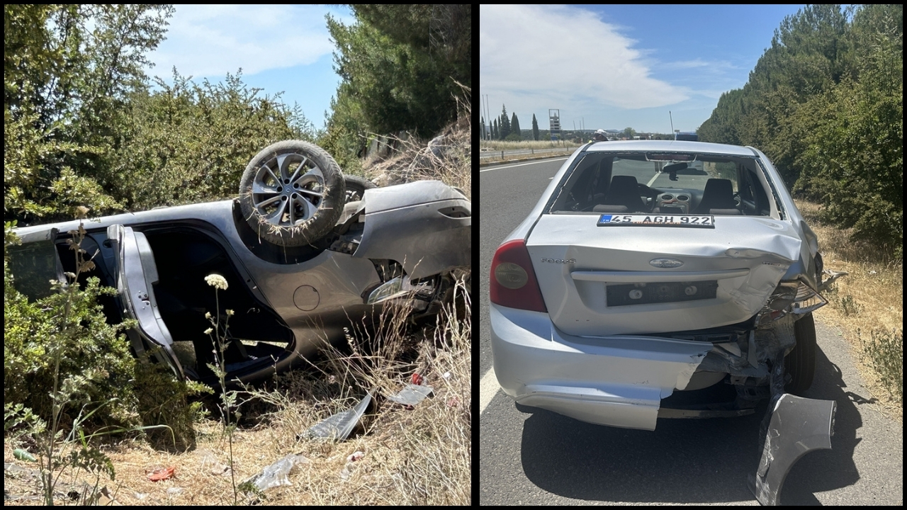 İ.Y. (49) yönetimindeki 34 PR 7024 plakalı otomobil, Uşak-İzmir kara yolu Organize Sanayi Bölgesi yakınlarında önünde seyreden K.K'nin (30) kullandığı 45 AGH 922 plakalı otomobile çarparak devrildi.